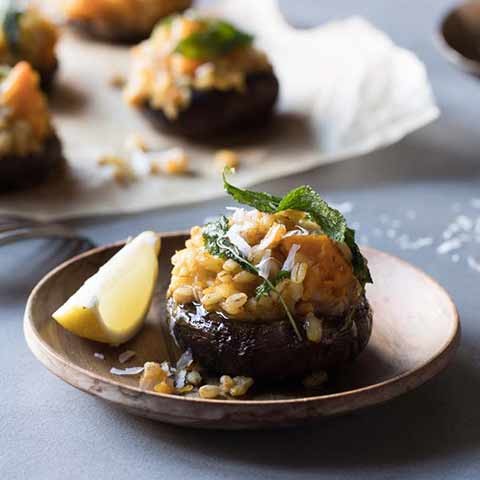 Cheesy Risotto Stuffed Portabello with Pumpkin & barley